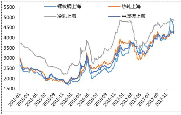 上月表現(xiàn):2017年12月份,國內(nèi)鋼材市場總體表現(xiàn)為弱勢運(yùn)行,給大家的感覺似乎是市場下跌得很多,實(shí)際上主要是前期漲幅較大的螺紋、線材出現(xiàn)回調(diào),中板與上月基本持平,熱軋、冷軋、鍍鋅和彩涂板價(jià)格不僅沒有下降,相反卻出現(xiàn)一定幅度的回升。
