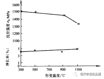 ▲圖4 18CrNiW鋼形變溫度對形變淬火后拉伸性能的影響