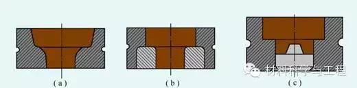 圖16 開式筒模:(a)整體筒模;(b)鑲塊筒模;(c)帶墊模筒模