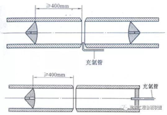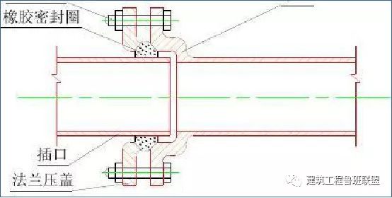 3)直管段宜采用剛性接頭,在管段上每4-5個連續(xù)的剛性接頭間設(shè)置一 個撓性接頭。