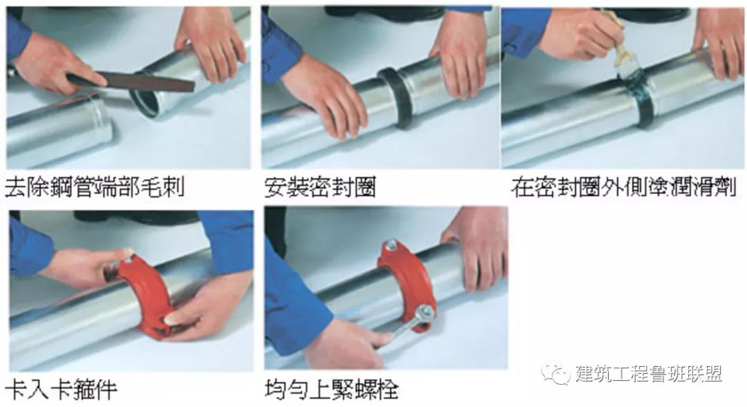 1)清理管端、套上橡膠密封圈、裝上卡箍、緊固螺栓;