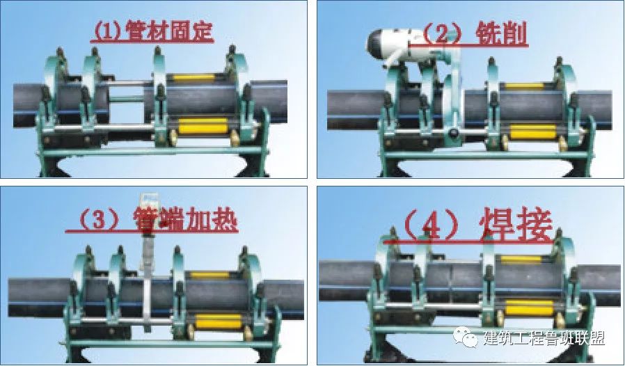 清理熱熔部位、承插連接的標(biāo)注熱熔深度。使用專用熱熔機按規(guī)定的加熱時間加熱連接部位。加熱后按規(guī)定壓力、時間使接頭熔合,接頭處形成一均勻熔接圈。