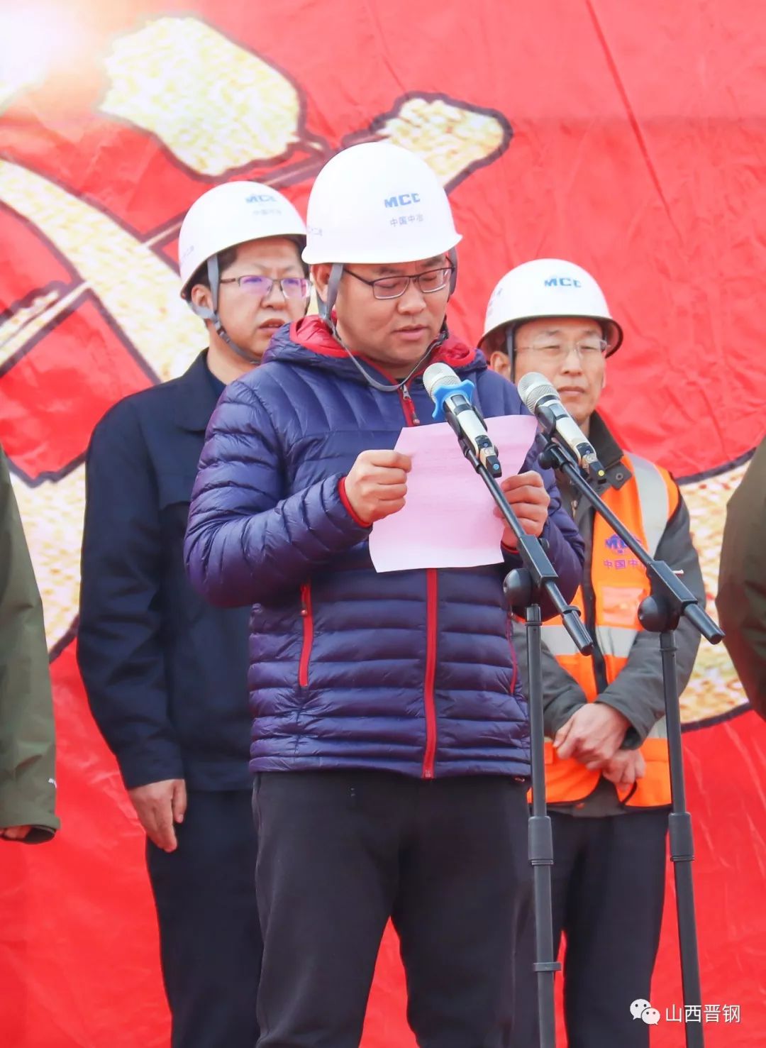 中國二十二冶集團金結公司晉鋼分公司煉鋼事業部經理楊成表態發言。中國二十二冶集團將以安全、質量、工期、管理四方面為首,精心組織、科學管理、合理安排,嚴格把關,堅持“安全基礎核心”“質量重于泰山”的宗旨,以實際的服務理念,虛心的工作作風、踏實的工作態度,高質量、高速度、高效益地實施工程,將晉鋼智造園區轉爐煉鋼項目打造成冶金行業的精品優質工程!