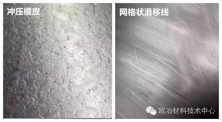 鋼板在發生時效后沖壓,位錯、晶界被間隙原子擠住,難以動彈,變形不均,導致鋼板表面出現橘皮狀粗糙不平或斜條紋狀的“滑移線”。(詳細定義可查詢歐冶三寶之 — “缺陷通”)